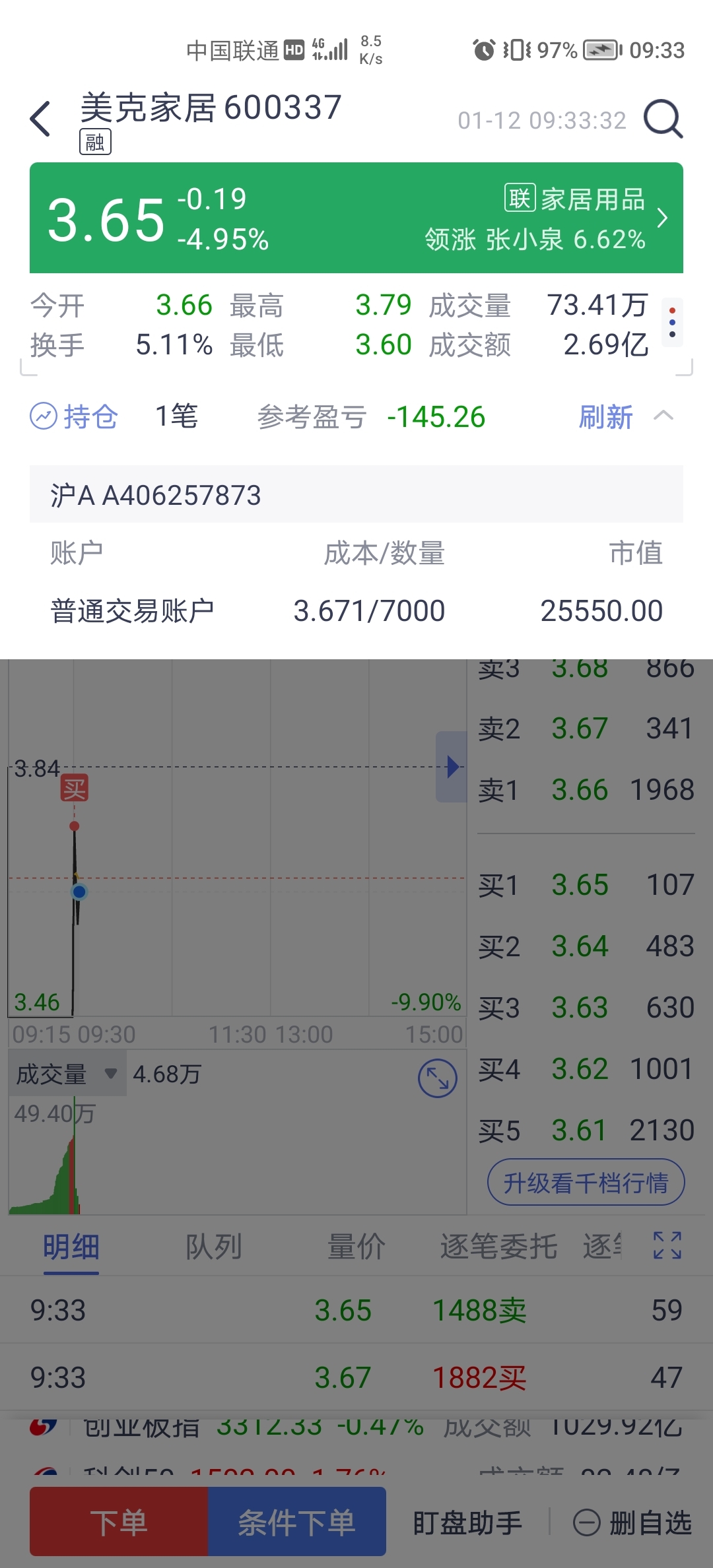 $美克家居(SH600337)$ 幸亏没抢多,明天割了买AI应用去,A杀的走势,不抱希望了。
