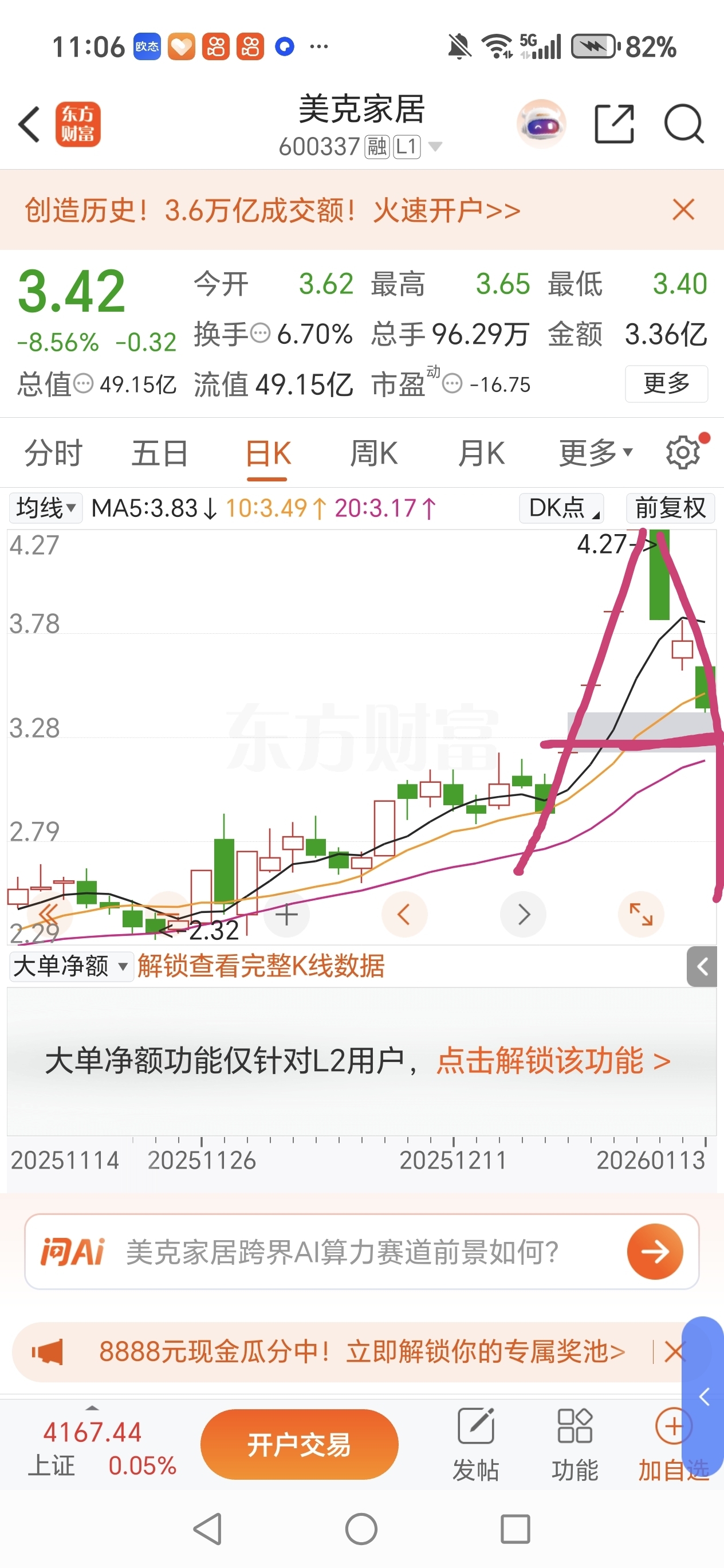 $美克家居(SH600337)$ A杀。