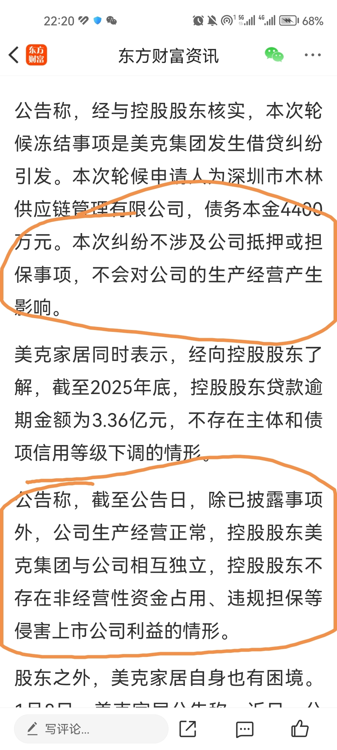 $美克家居(SH600337)$ 仔细看,大股东自己自己的公司借贷然后他的上市股份被冻结了,借款和上市公司无关,最坏打算还不上钱股份拍卖换实控人。