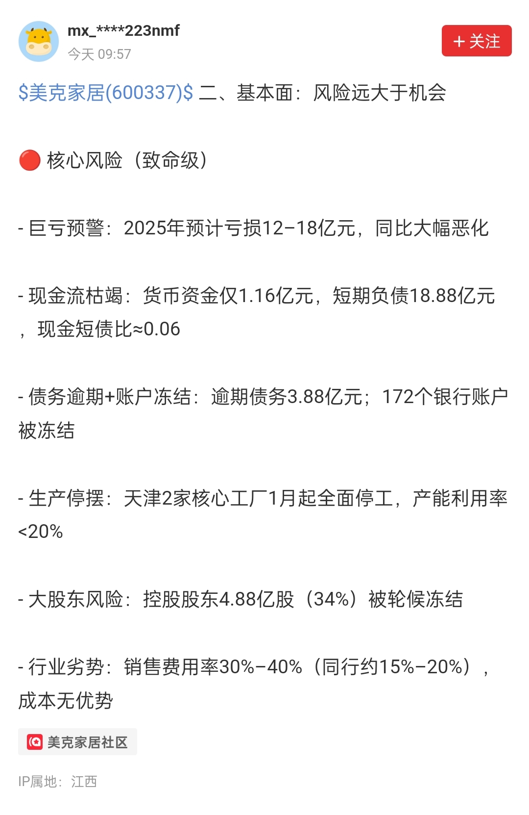 $美克家居(SH600337)$ 风险极大。