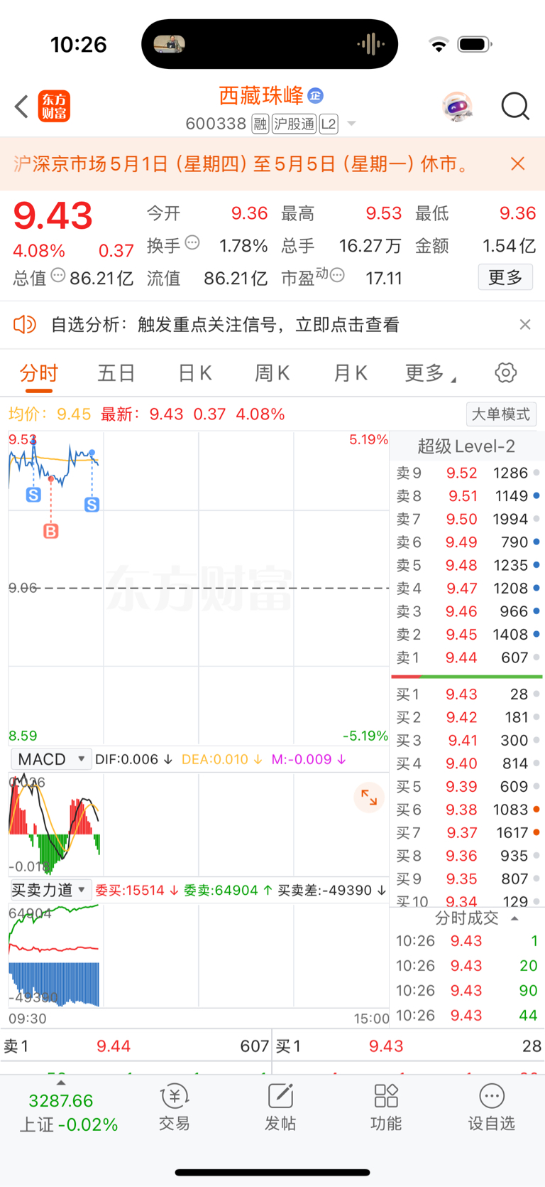$西藏珠峰(SH600338)$