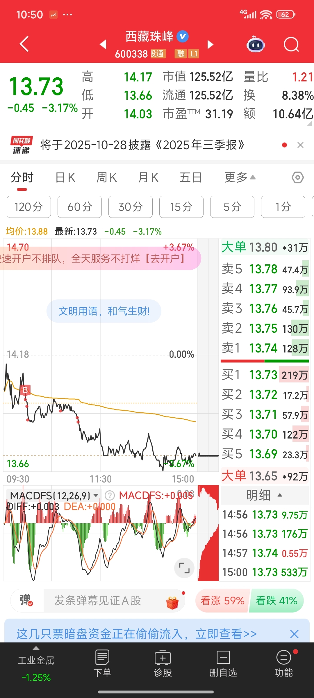 $西藏珠峰(SH600338)$ 跌了,继续低吸