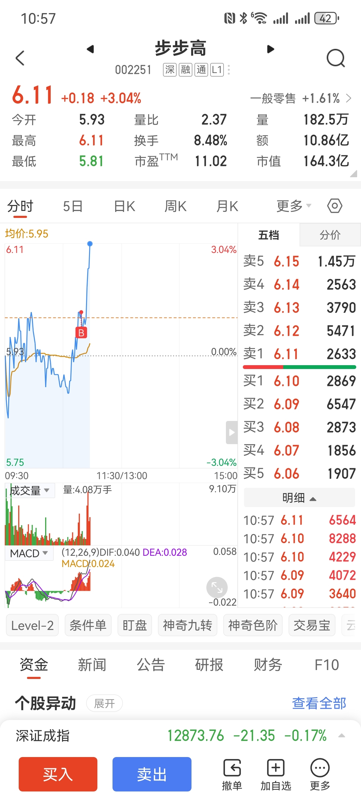 $西藏珠峰(SH600338)$ 珠峰开盘就跑了,现在换到步步高继续吃肉。