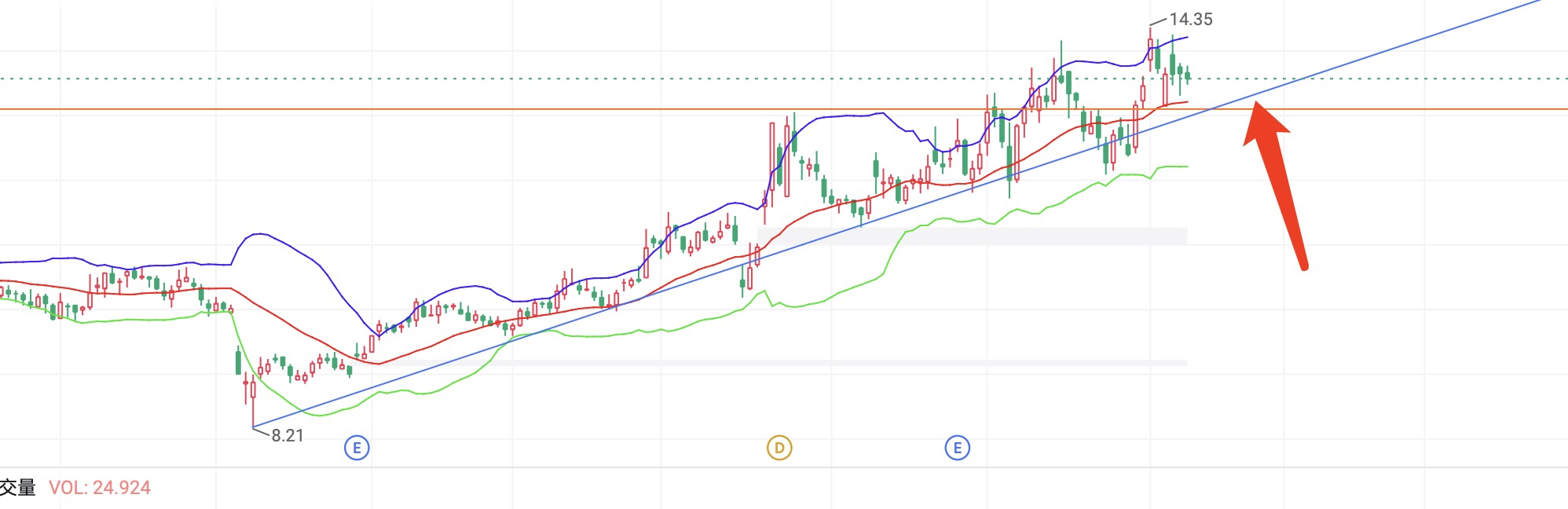 从8.12的低点,一直走到14的现在,控分狂魔珠峰一直严格按照这条趋势线缓步向上