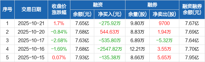 西藏珠峰:融资净偿还275.92万元,融资余额7.65亿元(10-21)