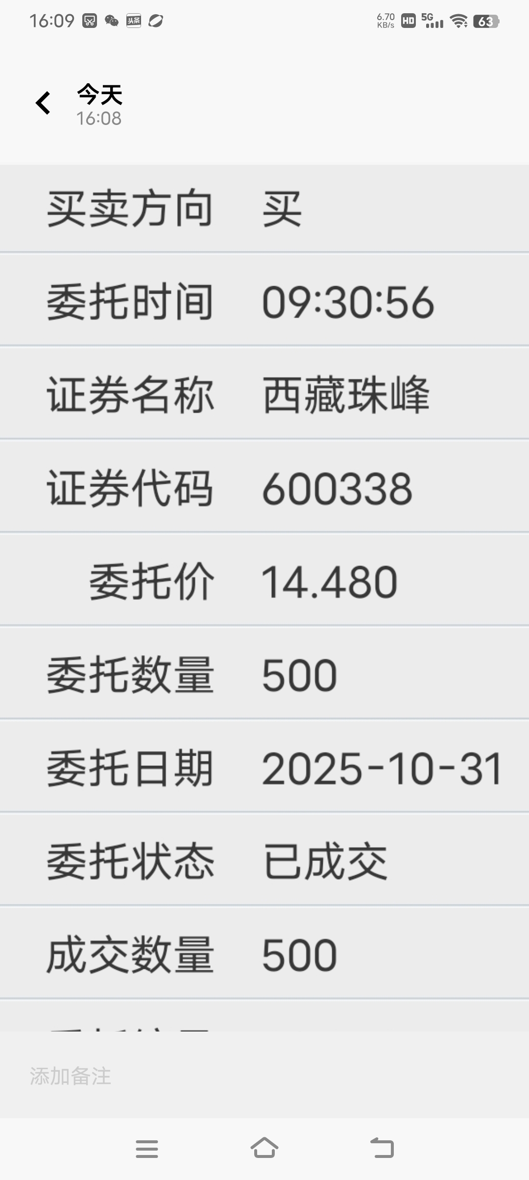 本人与今天增持500股西藏珠峰,资金来源为这月工资,愿与西藏珠峰共同成长