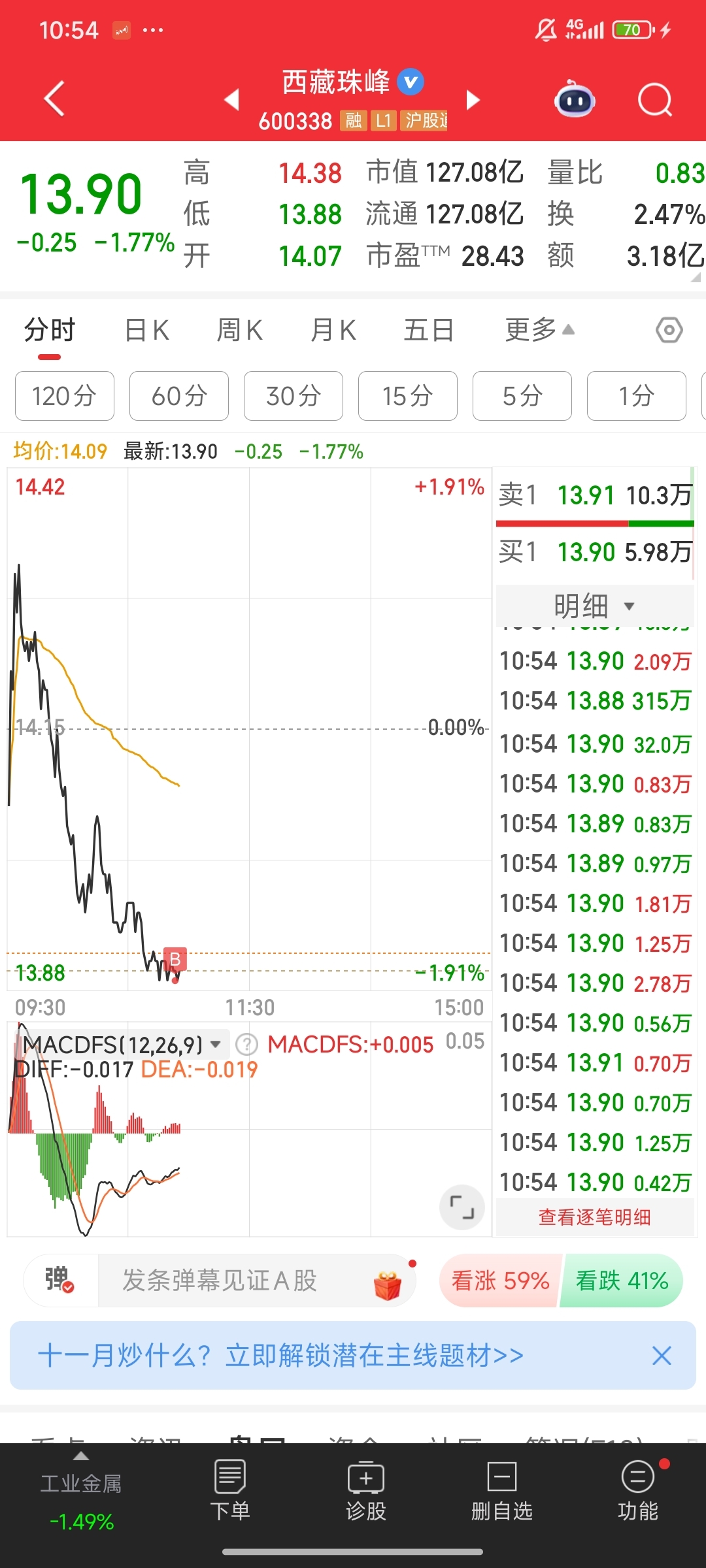 $西藏珠峰(SH600338)$ 昨天T出去的,接回来