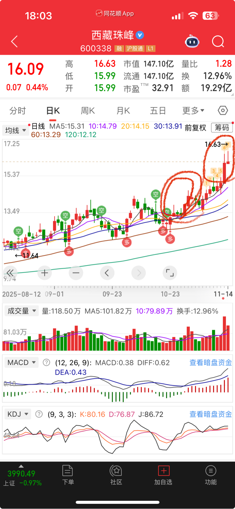 $西藏珠峰(SH600338)$ 难道重复昨天的故事?