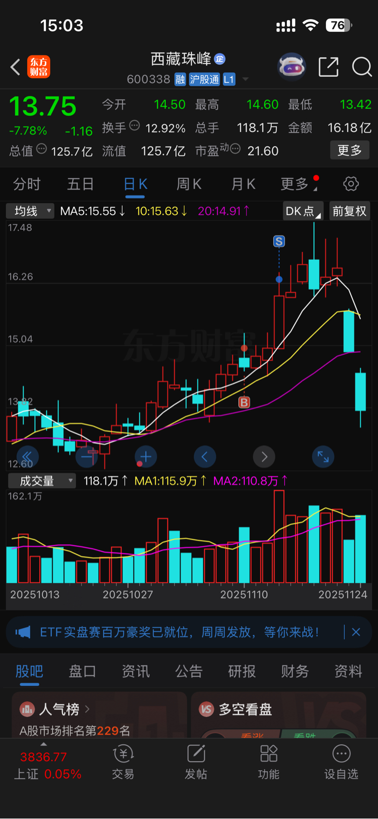 $西藏珠峰(SH600338)$ 还好跑得快