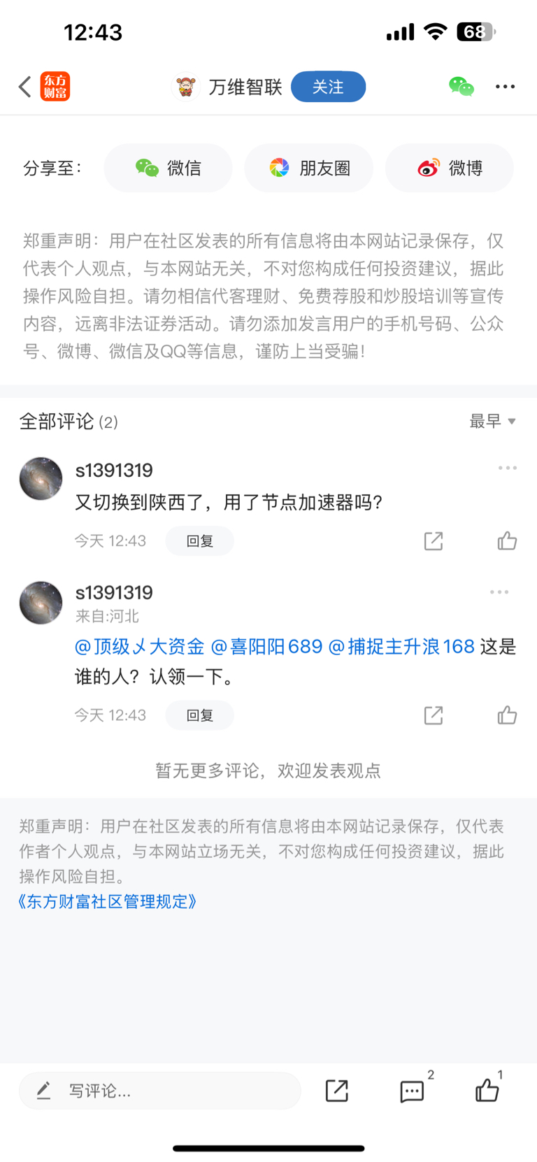 温馨提示: 1.根据《证券法》规定,禁止编造、传播虚假信息或者误导性信息,扰乱证券市场;2.用户在本社区发表的所有资料、言论等仅代表个人观点,与本网站立场无关,不对您构成任何投资建议。用户应基于自己的独立判断,自行决定证券投资并承担相应风险。《东方财富社区管理规定》