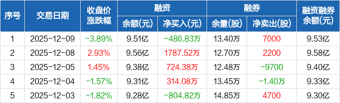 西藏珠峰:融资净偿还486.83万元,融资余额9.51亿元(12-09)