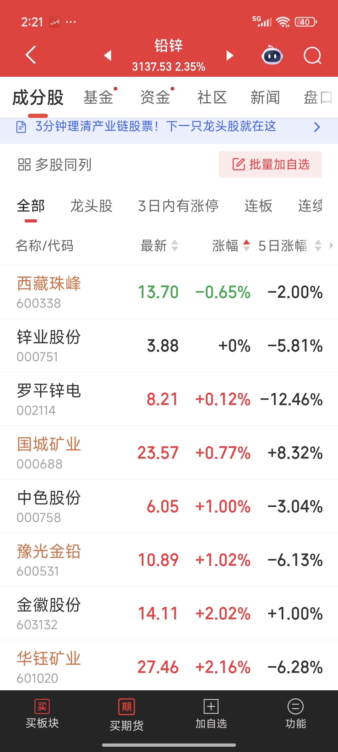 $西藏珠峰(SH600338)$ 铅锌板块大涨,唯一绿的