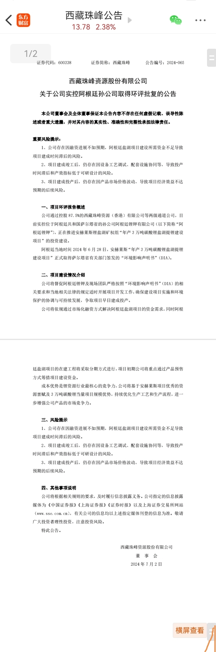 会后,萨恩斯省长在其社交媒体平台上发布了会谈相关内容,指出公司项目的新进展证明了萨尔塔矿业模式的发展潜力,并将为当地民众创造更多就业与发展机会。上述表态体现了当地政府对公司项目的高度认可与支持。