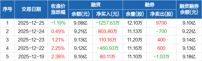 西藏珠峰:融资净偿还1257.63万元,融资余额9.08亿元(12-25)