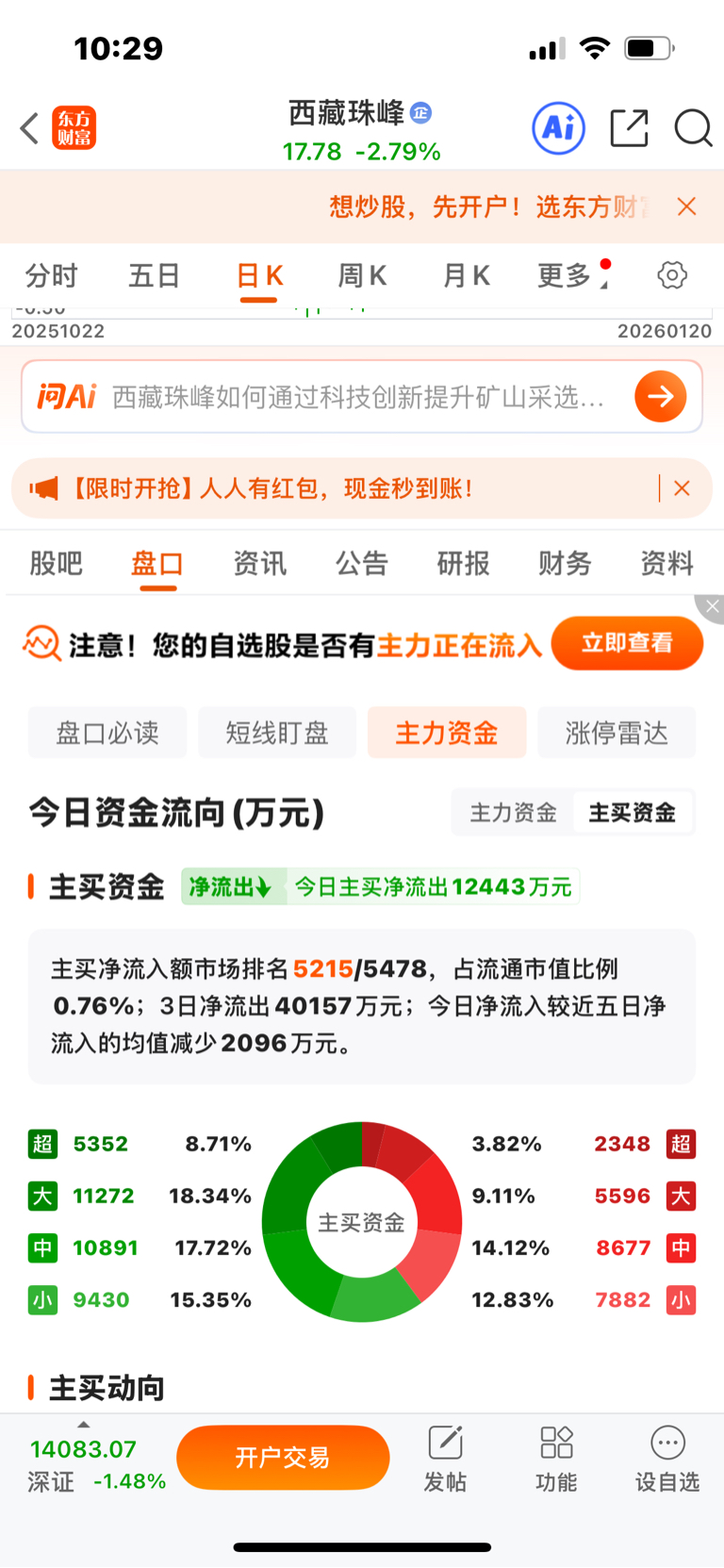 $西藏珠峰(SH600338)$ 主买资金流出好多啊!