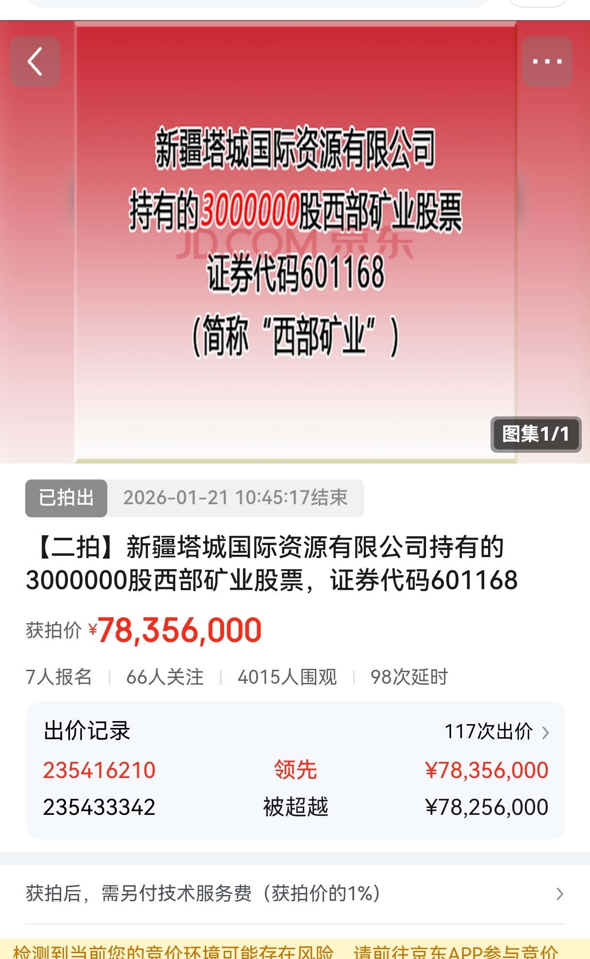 $西藏珠峰(SH600338)$ 拍卖成功 股东有钱了