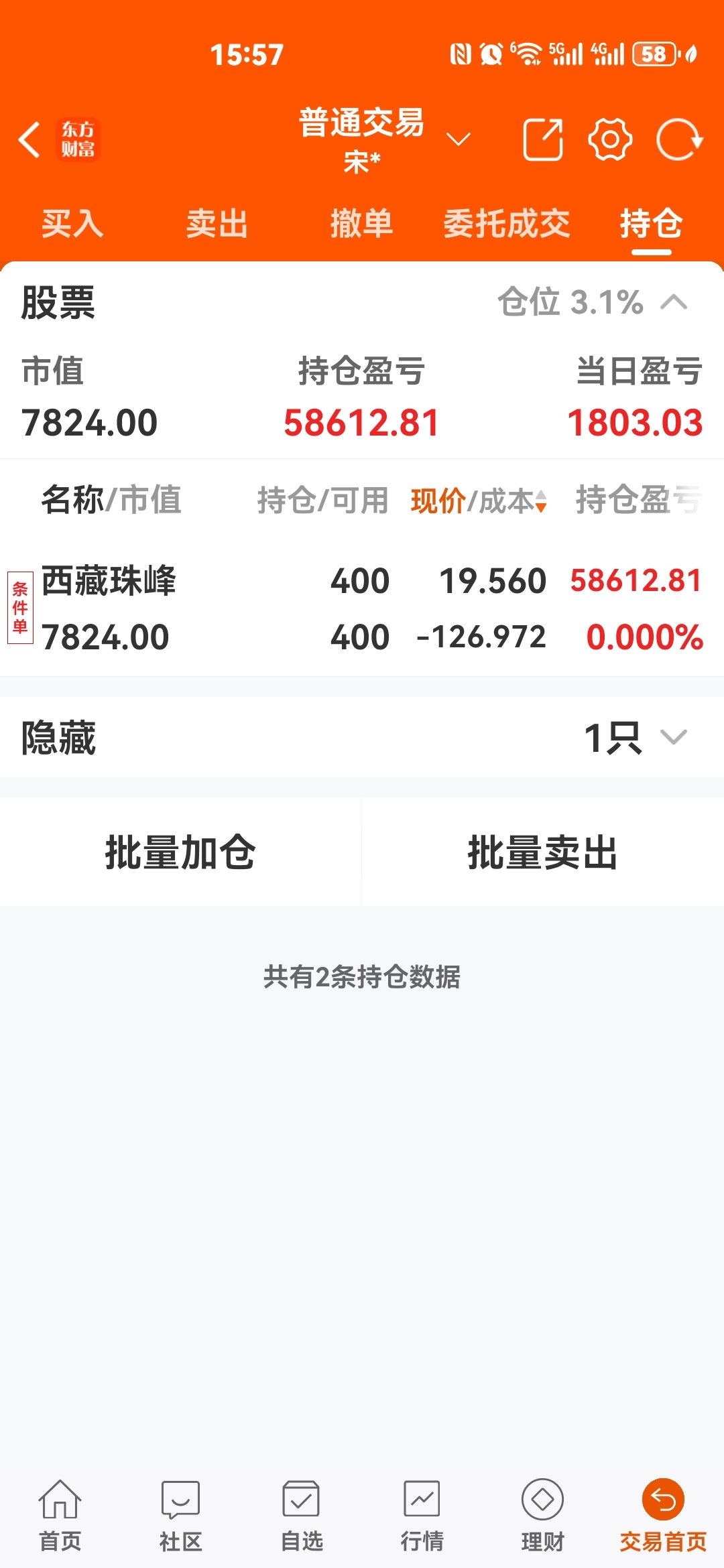 $西藏珠峰(SH600338)$ 剩下一点点