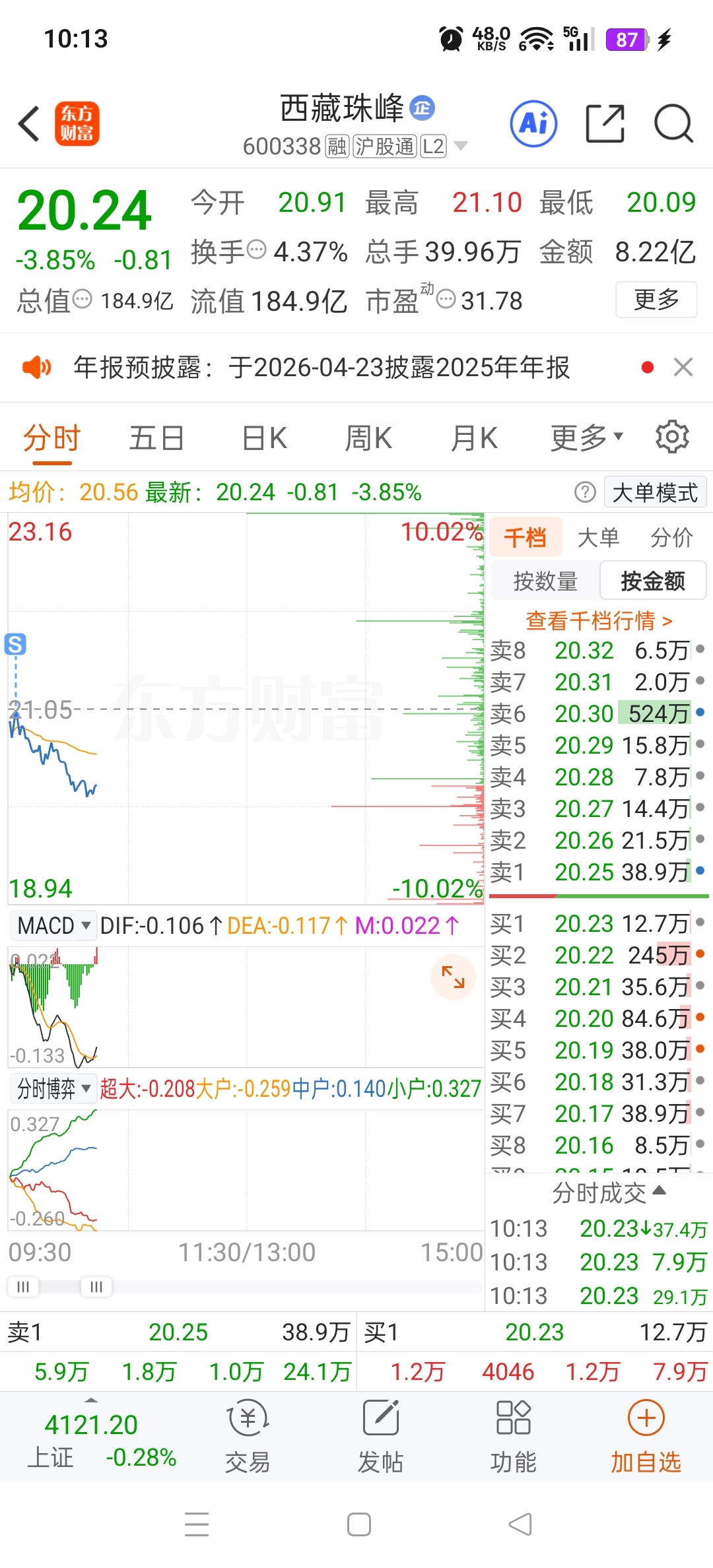 $西藏珠峰(SH600338)$ 这个,还好开盘卖掉了,买了黄金直接涨停了