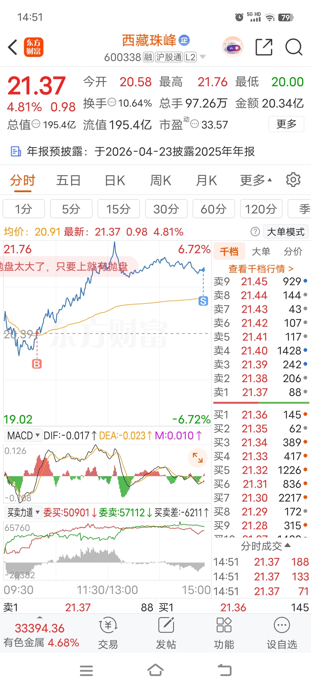 $西藏珠峰(SH600338)$ 明天怎么样,这个t不太行