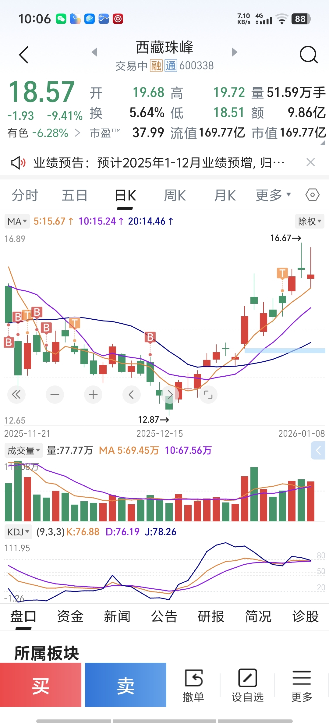 $西藏珠峰(SH600338)$ 跌停再来两万股,我就喜欢跌停进货