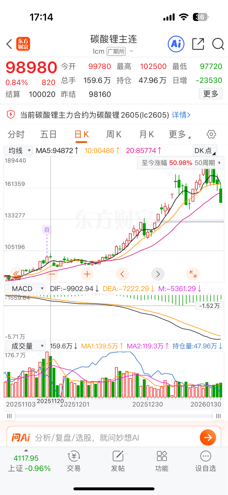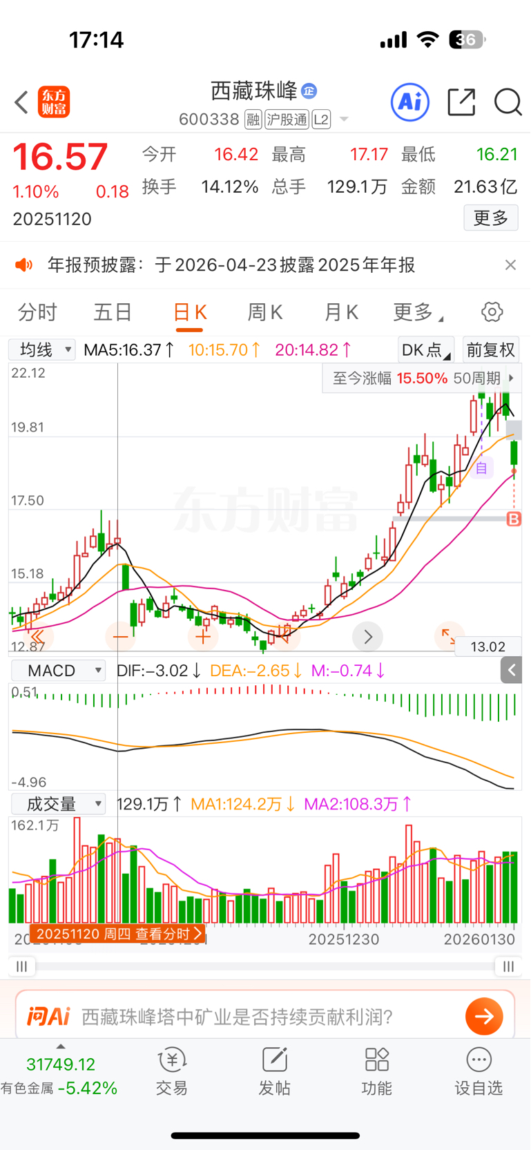 25年11月20碳酸锂不到10万 白银每盎司50美金西藏珠峰股价17元, 你怎么知道他本身就价值17元?要知道,股价并不和业务和产品价格绑定,也就是说现在碳酸锂15万 白银80美金 西藏珠峰19元,他也有可能不值19元,可能才值10元。