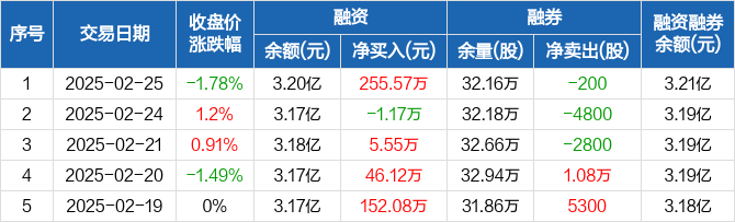中油工程:融资净买入255.57万元,融资余额3.2亿元(02-25)