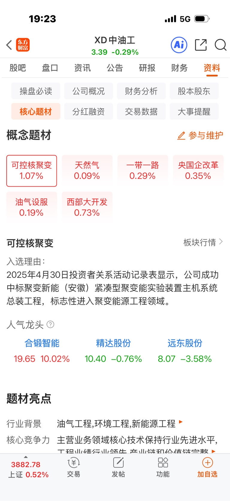 $XD中油工(SH600339)$ 10月2日在安徽合肥安装的紧凑型可控核聚变就是中油安装的,9号看市场给什么答案了