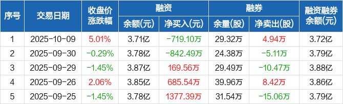 中油工程:融资净偿还719.1万元,融资余额3.71亿元(10-09)