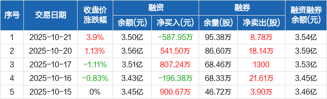 中油工程:融资净偿还587.95万元,融资余额3.5亿元(10-21)