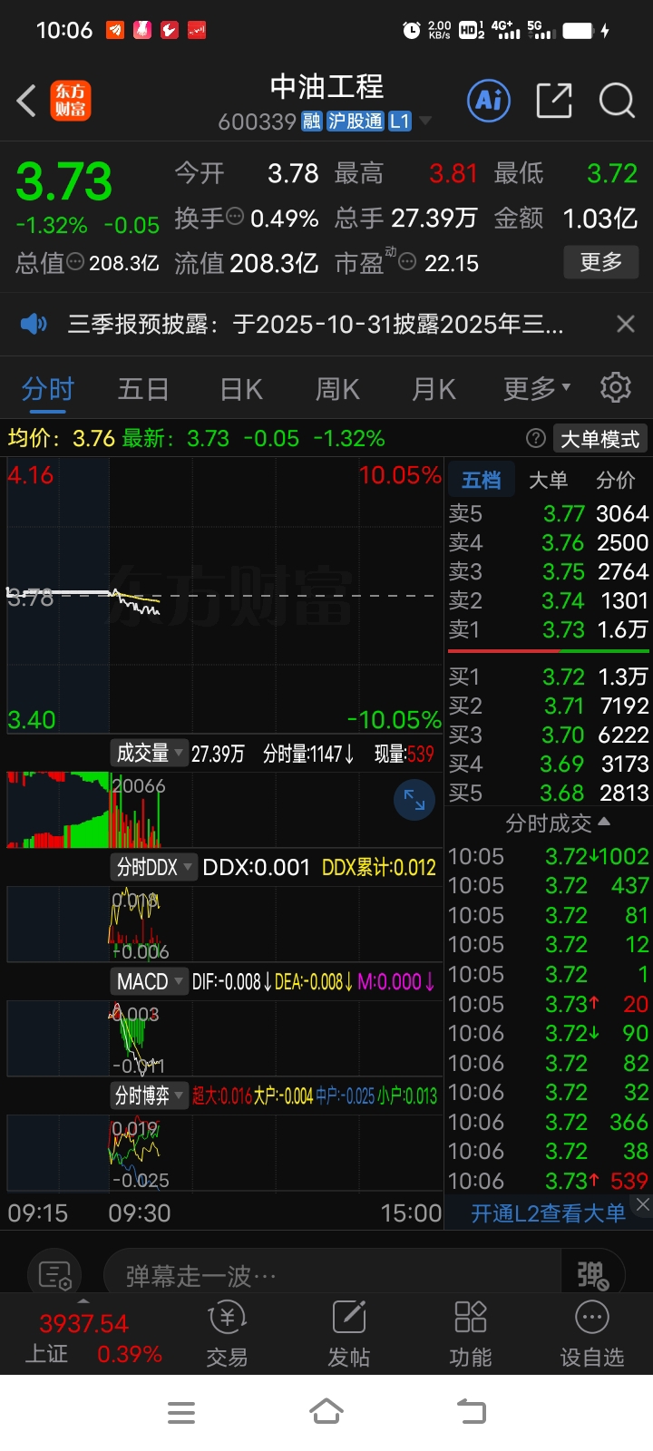 $中油工程(SH600339)$ 主力砸盘了量分时量好大