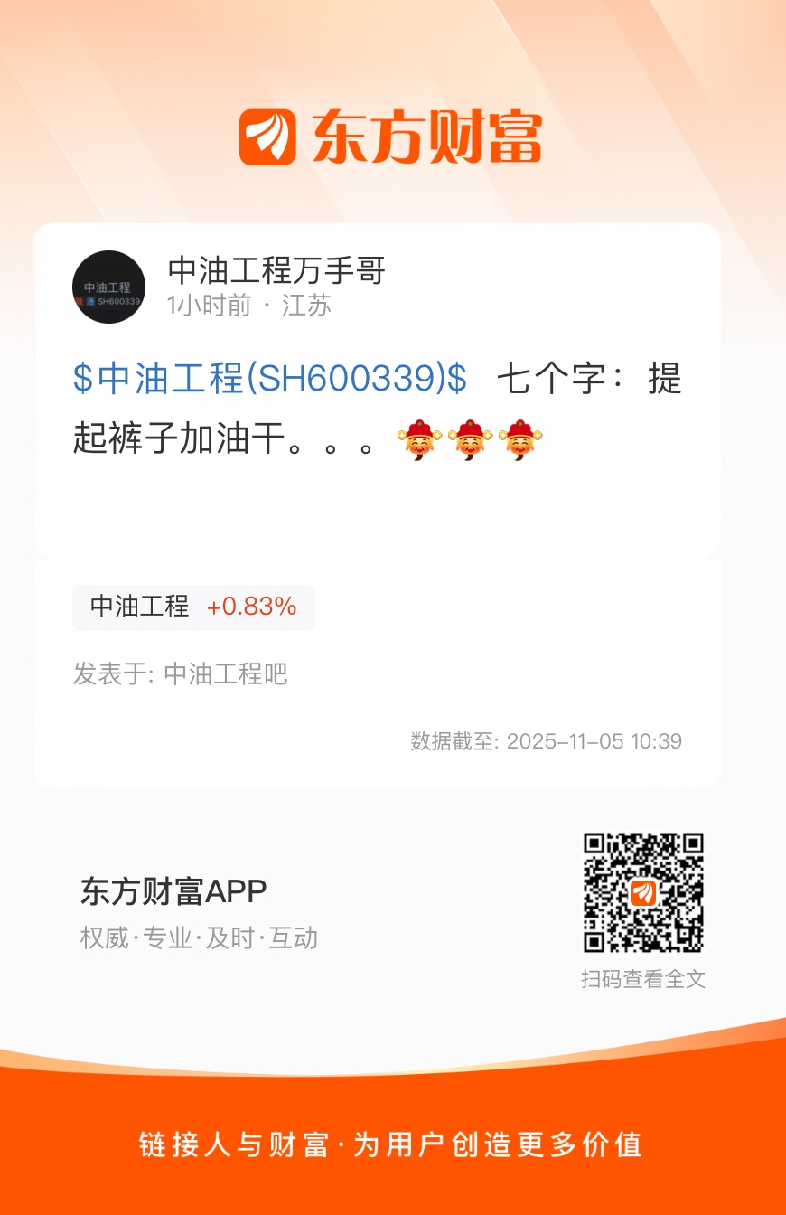 $中油工程(SH600339)$  七个字:提起裤子加油干。。。