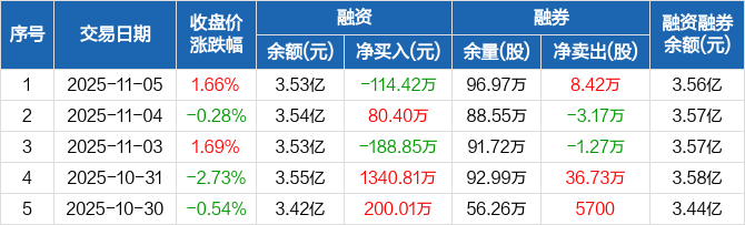 中油工程:融资净偿还114.42万元,融资余额3.53亿元(11-05)