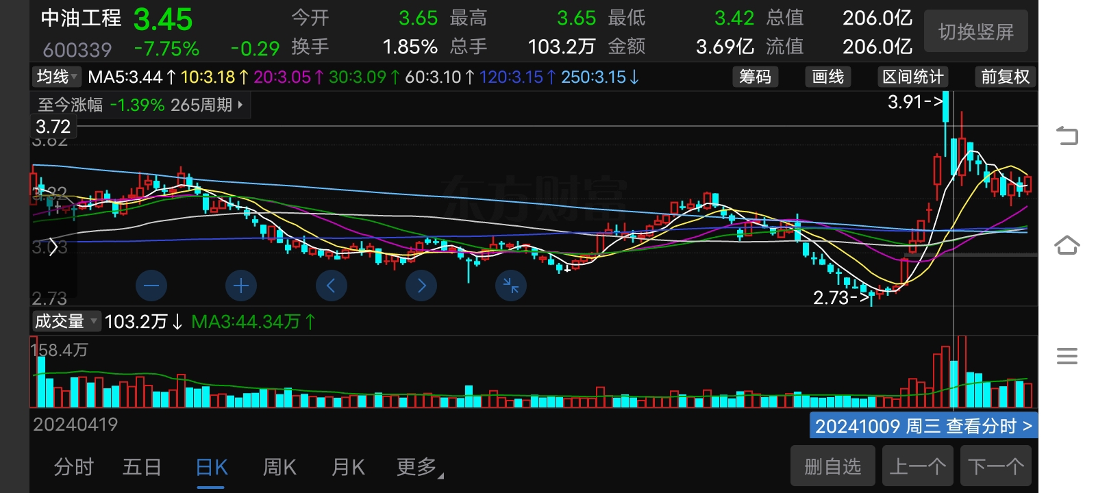 $中油工程(SH600339)$ 在去年大盘高点处震荡,