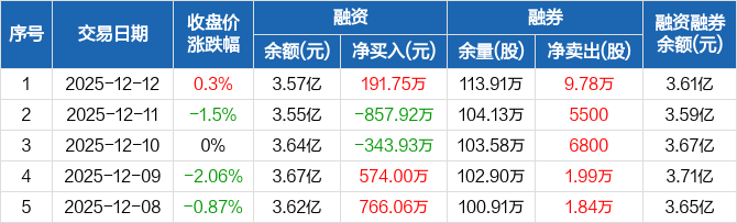 中油工程:融资净买入191.75万元,融资余额3.57亿元(12-12)