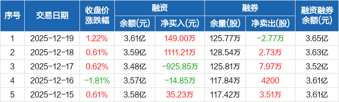 中油工程:融资净买入149万元,融资余额3.61亿元(12-19)