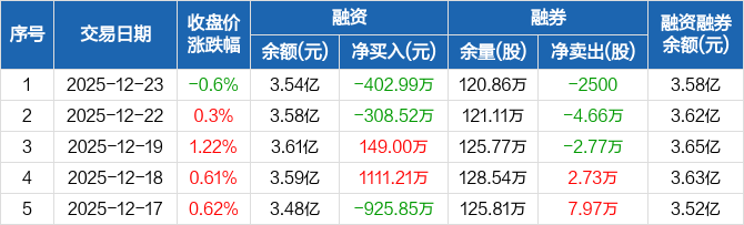 中油工程:融资净偿还402.99万元,融资余额3.54亿元(12-23)