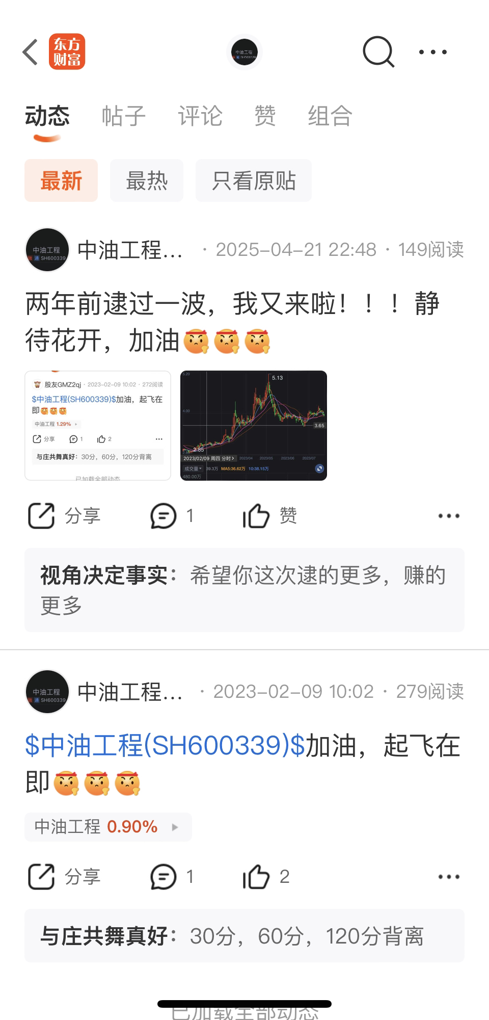 $中油工程(SH600339)$ 花有重开日,人无再少年!垃圾工程2023年2月9日侥幸抢过一波肉!去年在次进场,虽然没翻圈,但还行!梦想是要有的,万一不小心翻圈呢。。。