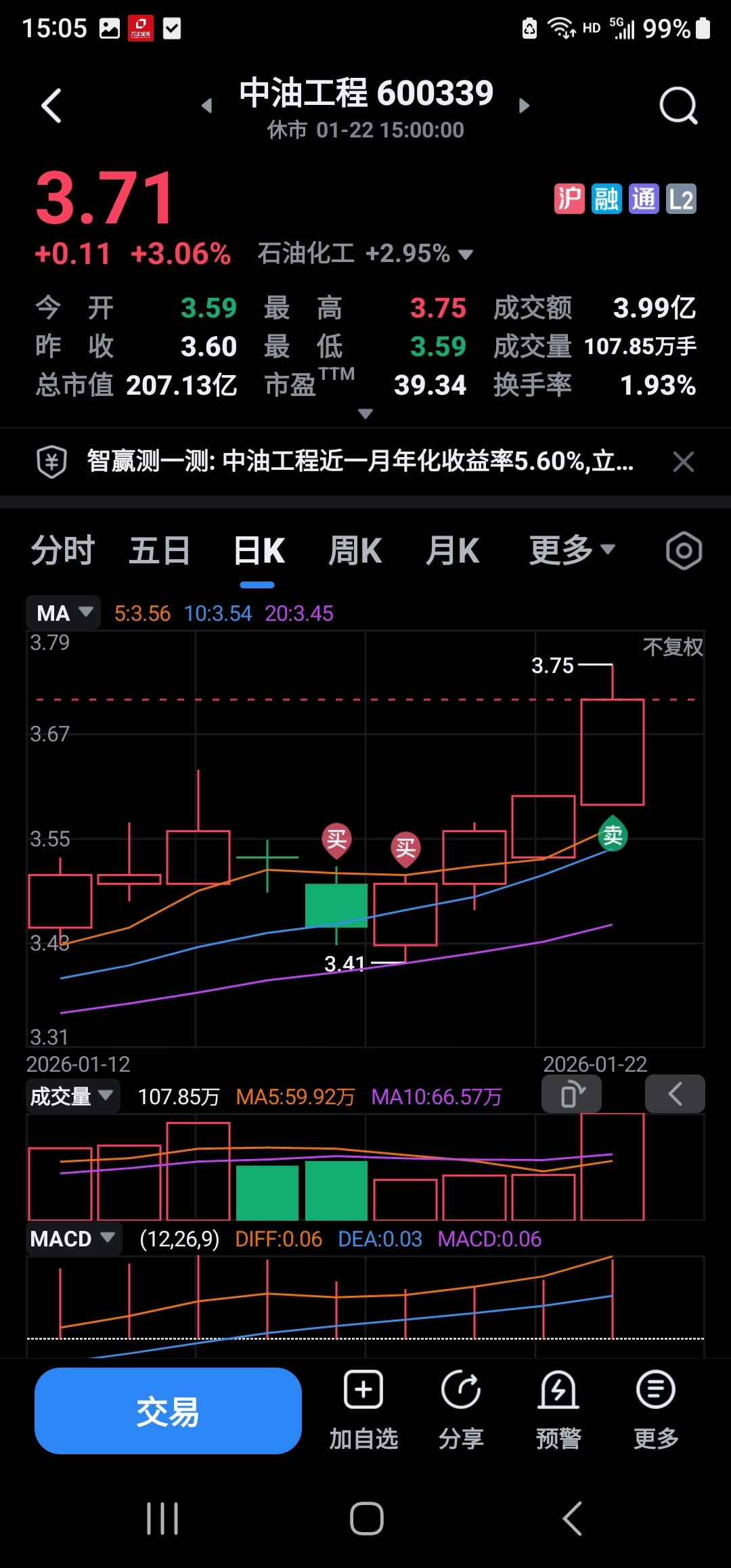 中油工程不断做t成本能做成负保持1万股仓位不动。
