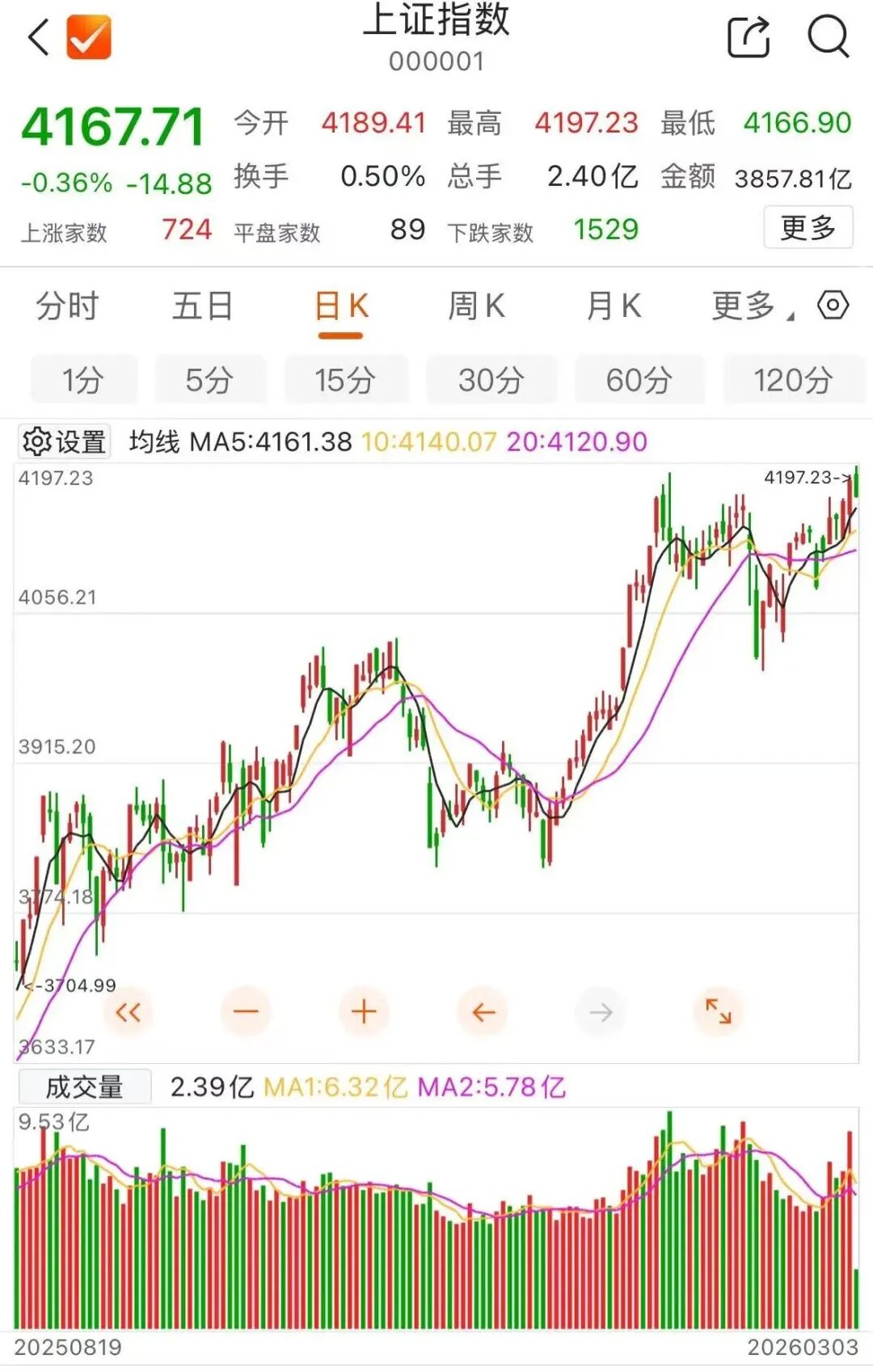 沪指盘中创阶段新高