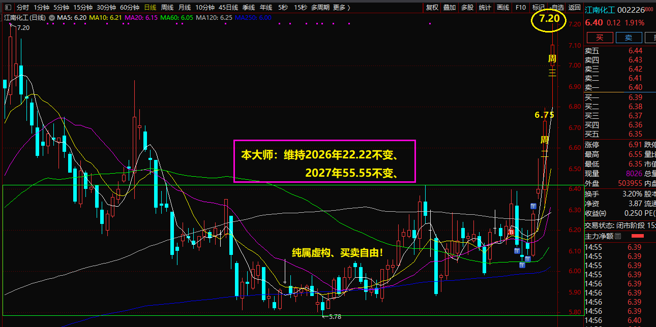 周二中油涨停板、江南化工周三触摸7.20元!