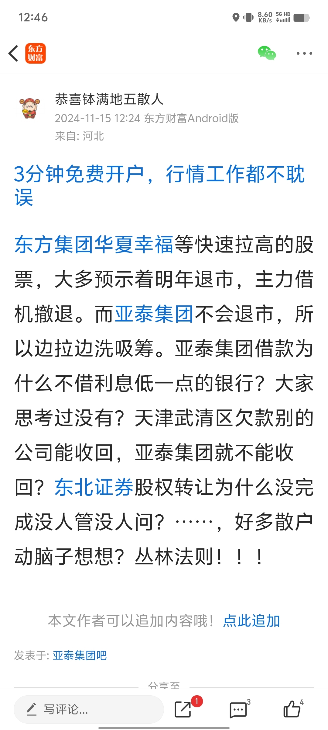 $华夏幸福(SH600340)$ 看看东方集团?卖出华夏幸福买入亚泰集团,还是买入亚泰集团安全!!!