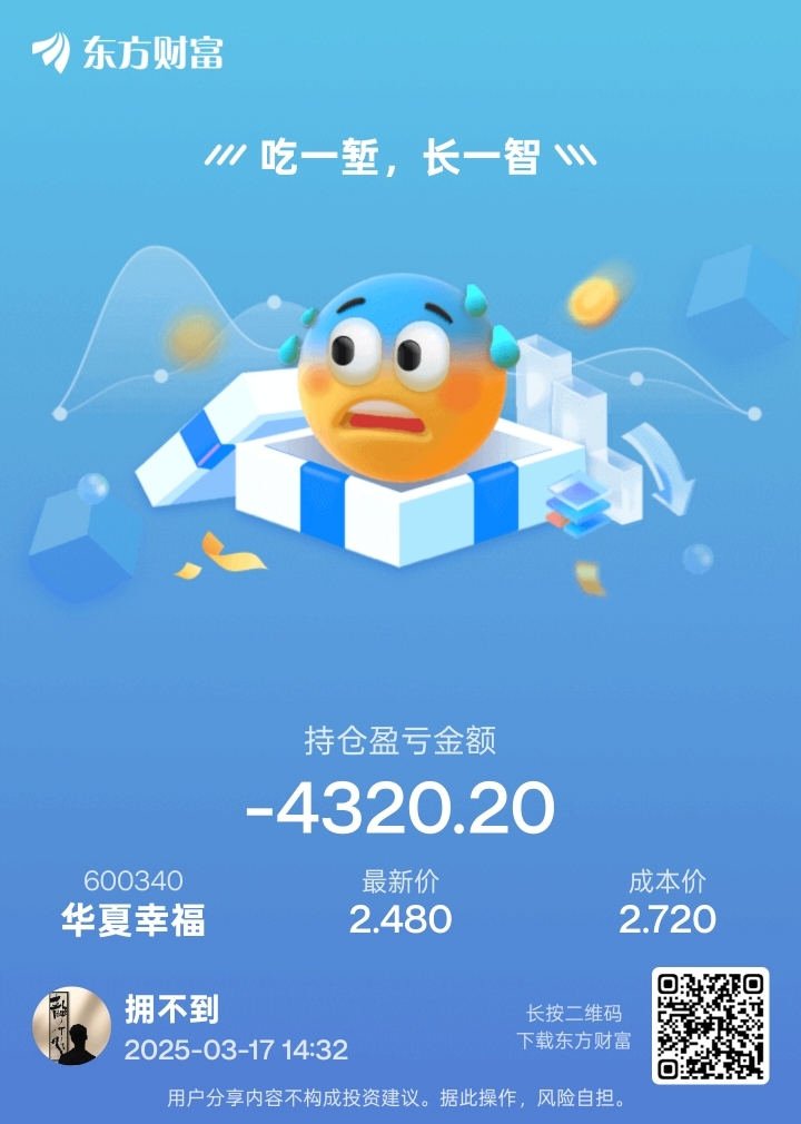 温馨提示: 1.根据《证券法》规定,禁止编造、传播虚假信息或者误导性信息,扰乱证券市场;2.用户在本社区发表的所有资料、言论等仅代表个人观点,与本网站立场无关,不对您构成任何投资建议。用户应基于自己的独立判断,自行决定证券投资并承担相应风险。《东方财富社区管理规定》