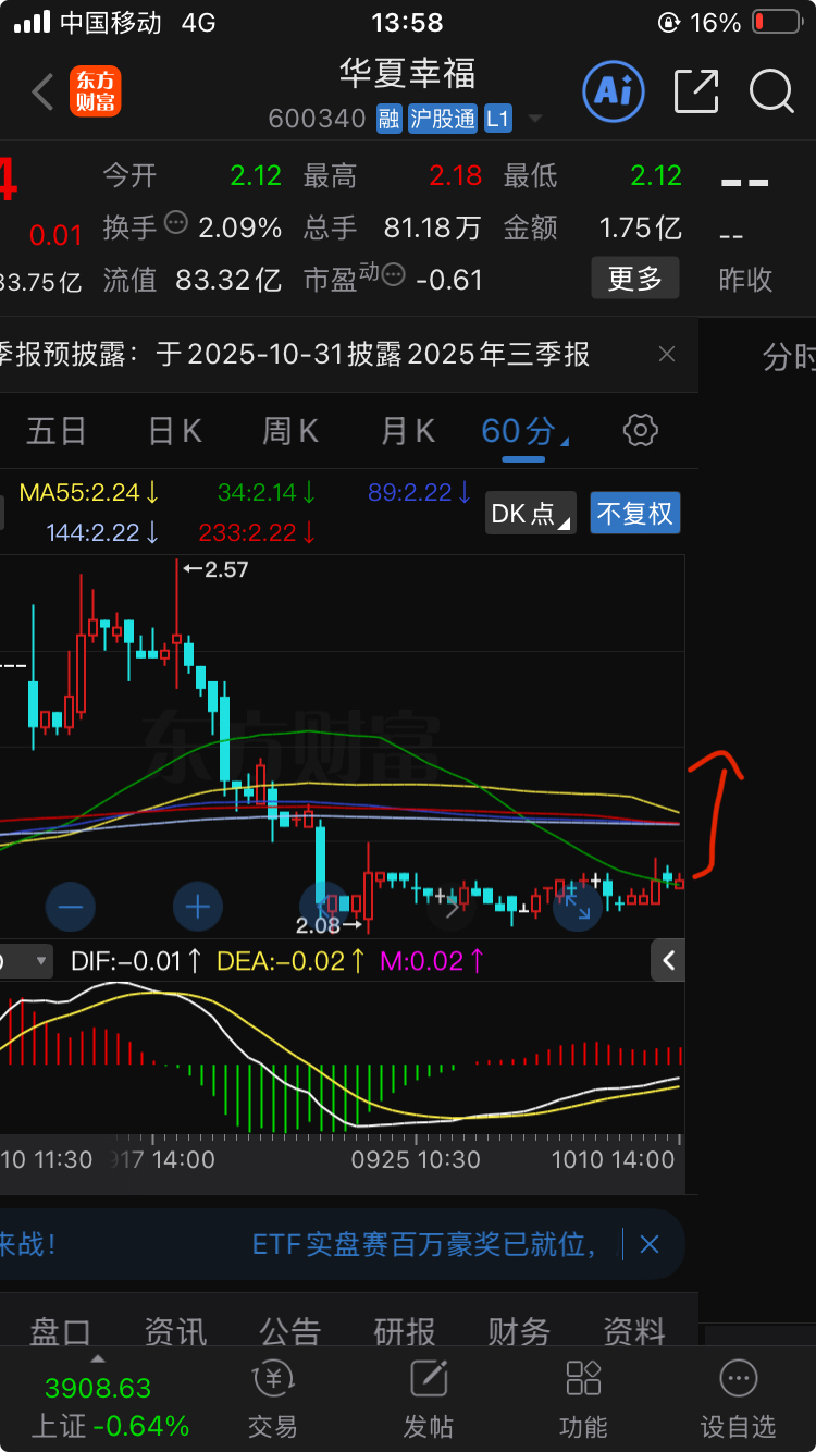 $华夏幸福(SH600340)$ 60分钟级别震荡内凹“承接”下坠的绿色均线,使之逐步转平(左侧近一周股价平均值)——预计下周一盘中再次拉升
