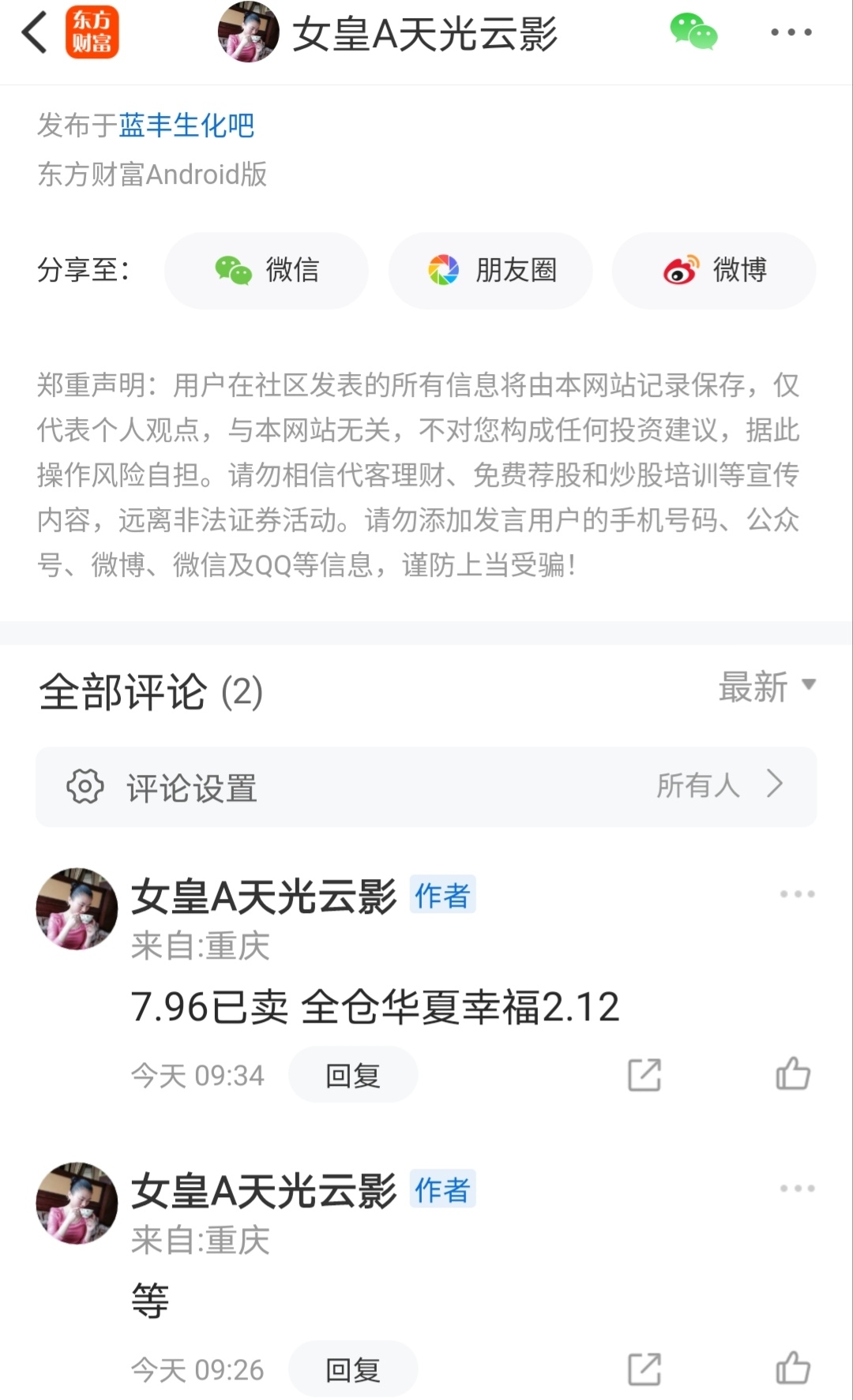 温馨提示: 1.根据《证券法》规定,禁止编造、传播虚假信息或者误导性信息,扰乱证券市场;2.用户在本社区发表的所有资料、言论等仅代表个人观点,与本网站立场无关,不对您构成任何投资建议。用户应基于自己的独立判断,自行决定证券投资并承担相应风险。《东方财富社区管理规定》