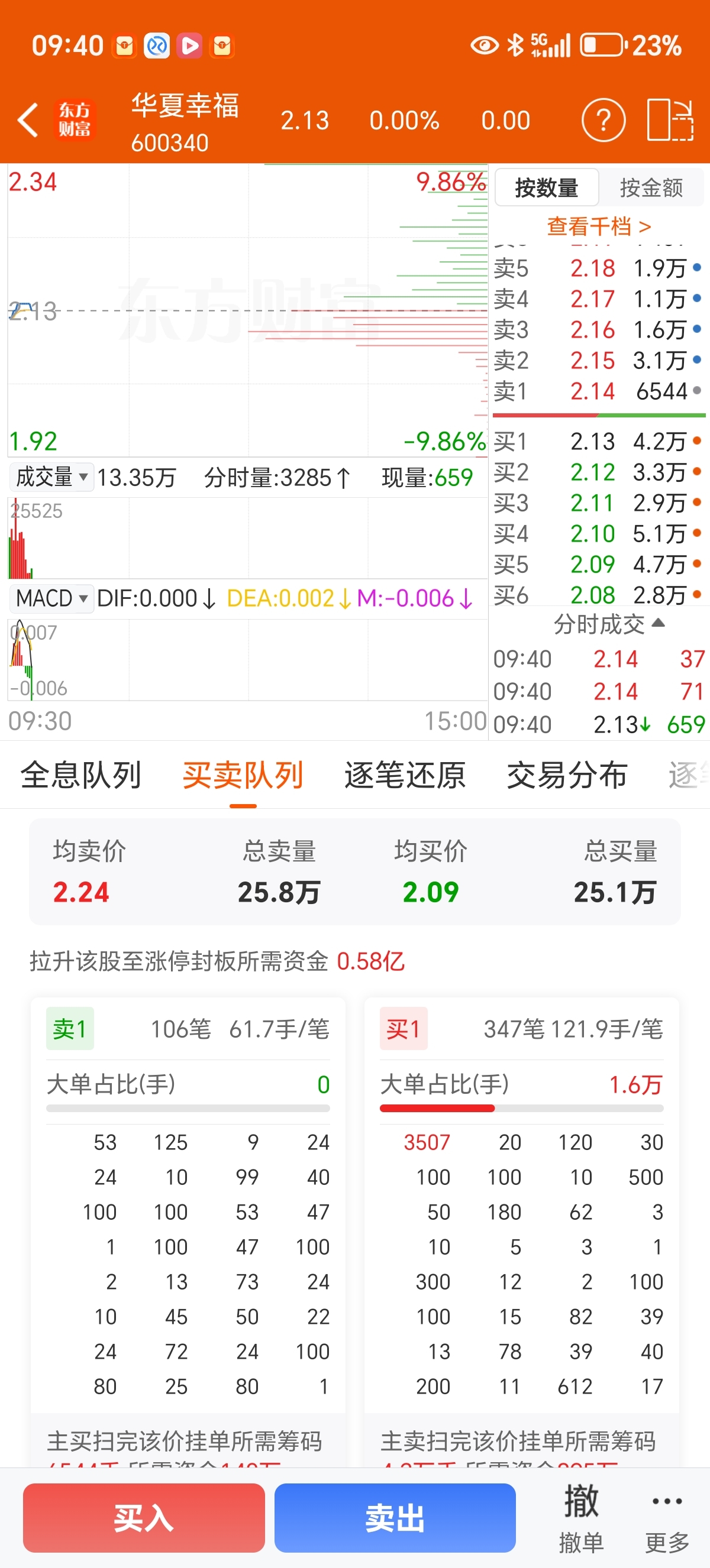 $华夏幸福(SH600340)$ 六千万就能涨停,快来几个大神发下力