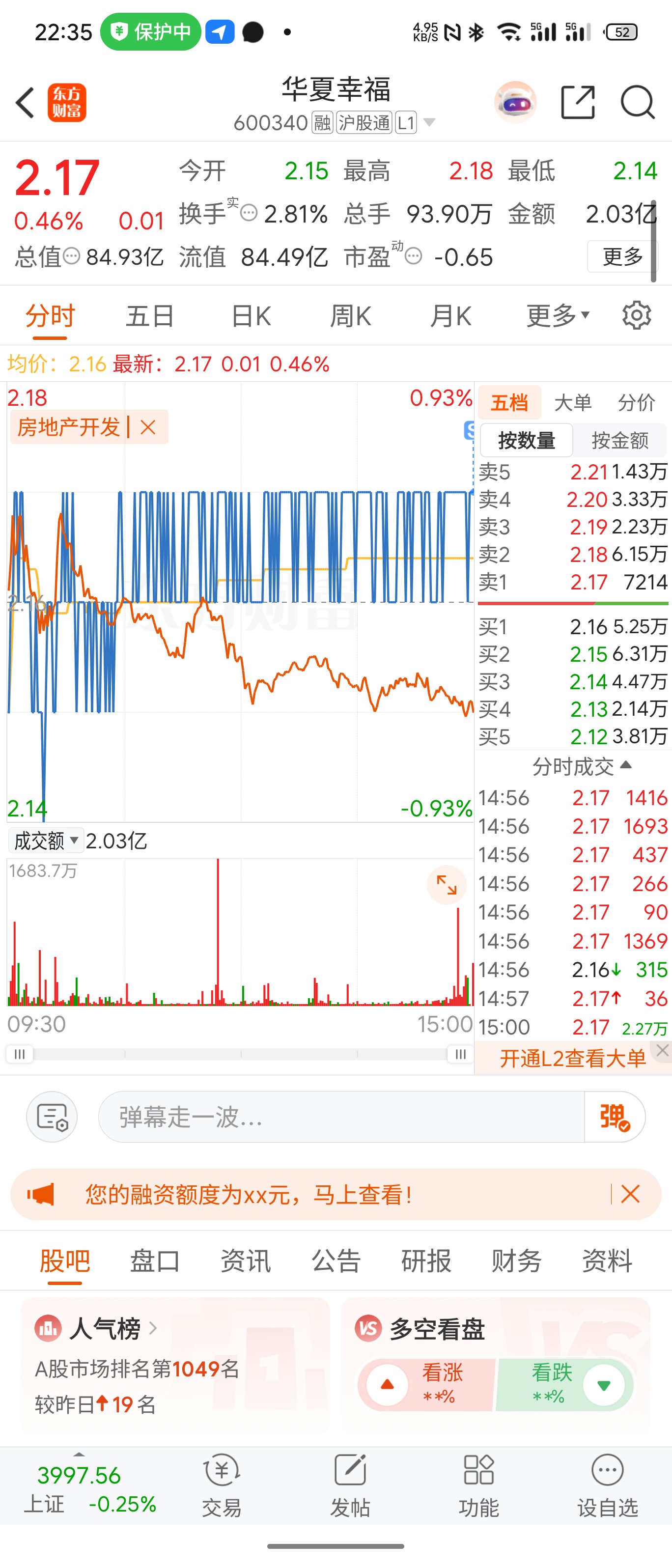 $华夏幸福(SH600340)$ 尾盘割了,小亏十万。