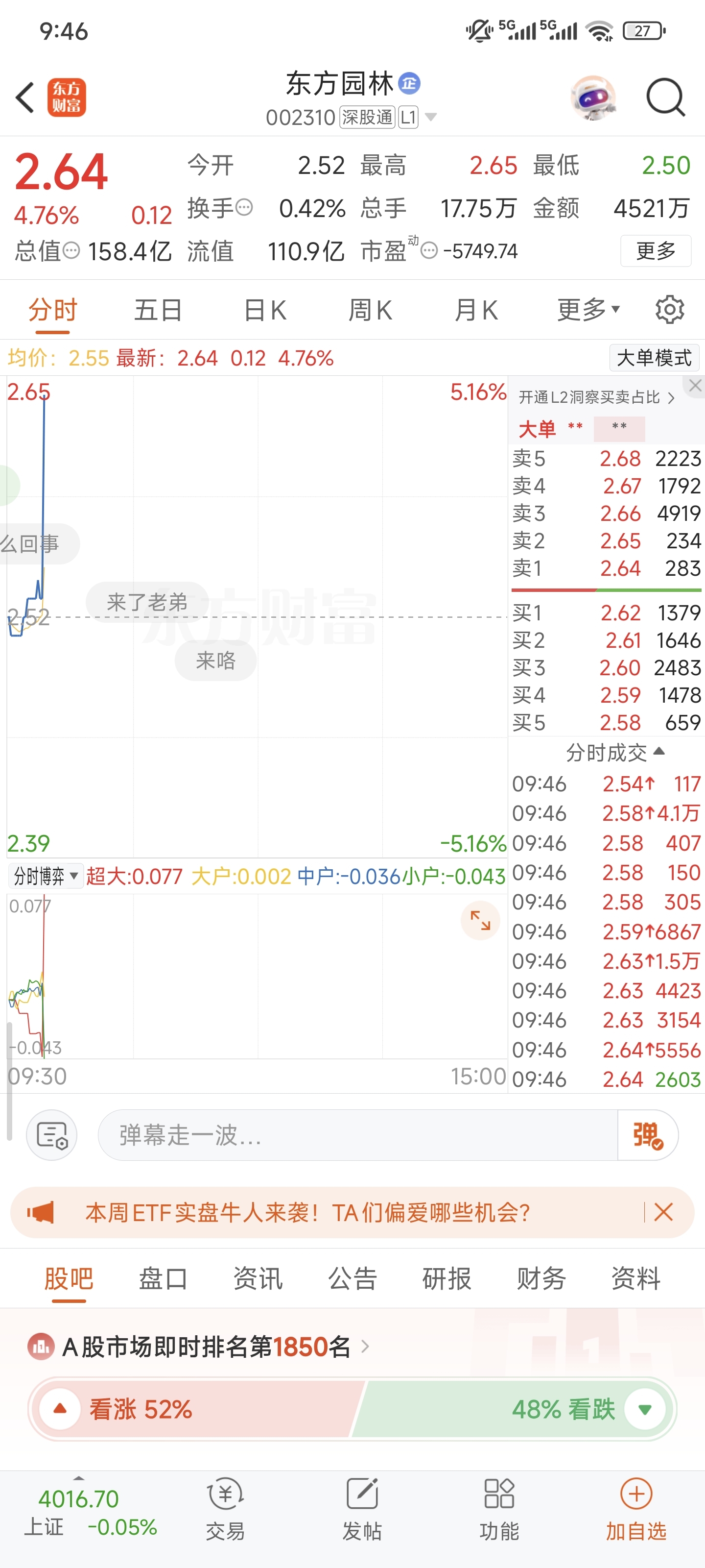 昨天卖了东方园林,今天2.25买了华夏幸福