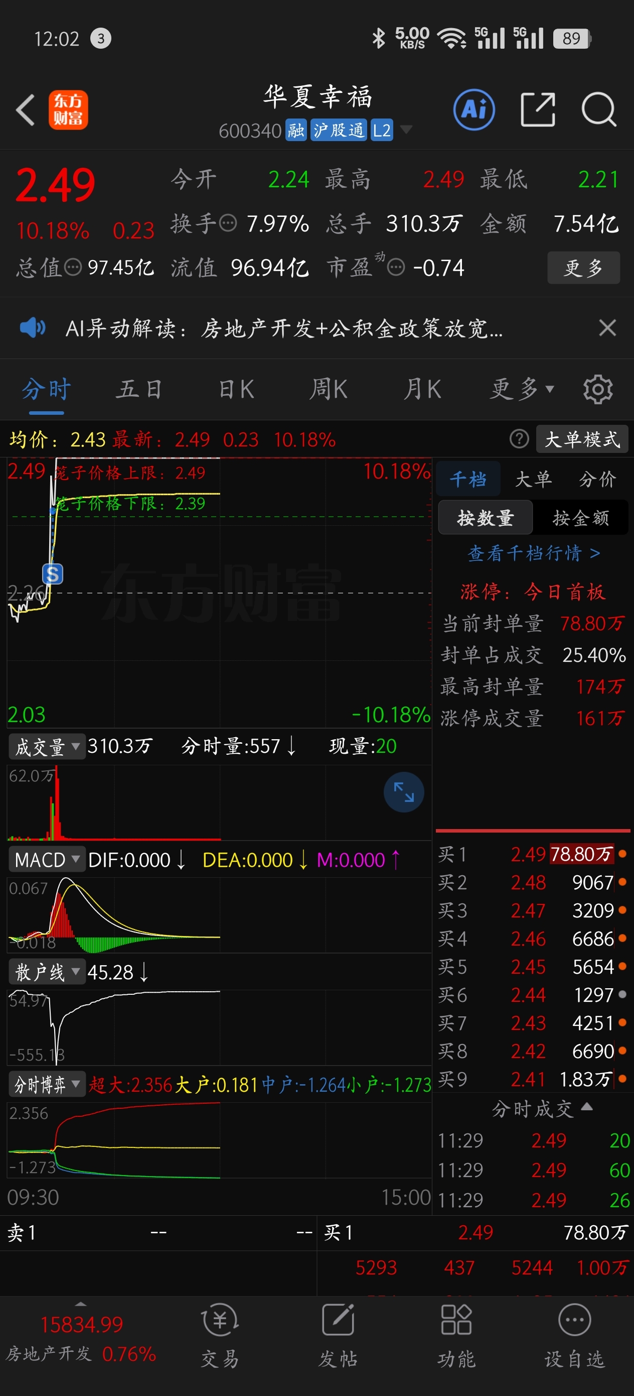 $华夏幸福(SH600340)$ 设的自动(0.06元)保险落差,硬是从2.48落到2.38(0.1元)给洗出去了,后悔死了!含泪