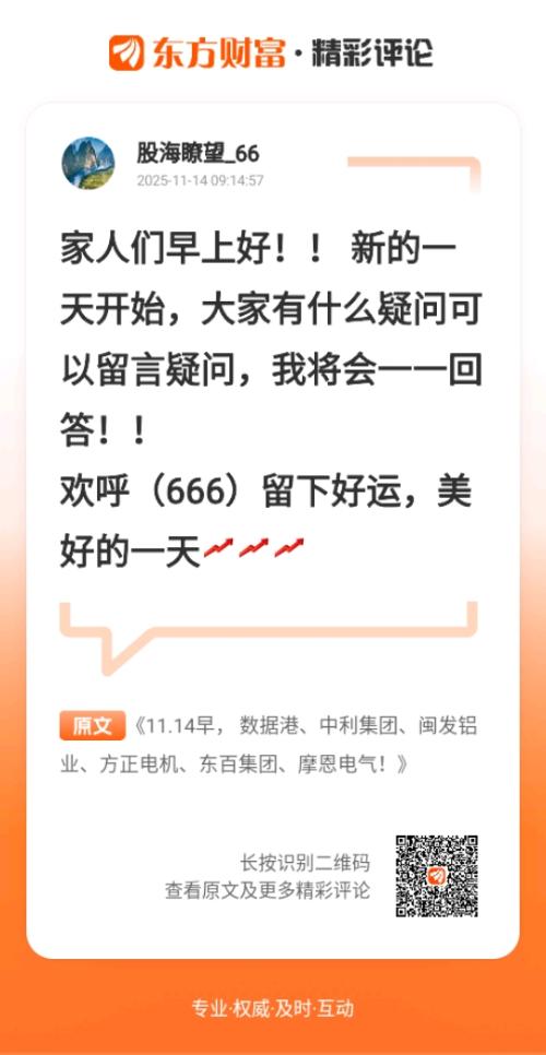 $方正电机(SZ002196)$方正电机:个股在昨天当中出现了低开回落的情况,这个是周二的阶段增厚安全垫的意义,那在今天进入周五的时候,短线的技术面上来讲,将会非常的考验个股是否会有继续上升的动能。目前来说,首先不能创出昨天的新低,其次就是要守住5根线,走出反包的阳线,如果这个条件都无法办到的情况之下,那么就说明这一轮行情结束,那么也就到了海哥离开的时候。