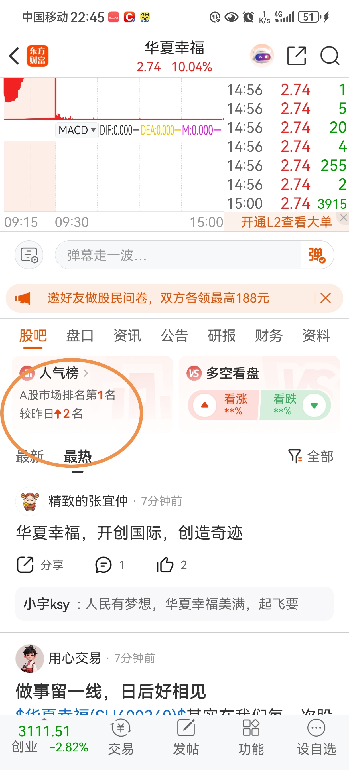 $华夏幸福(SH600340)$ 人气榜第一名流弊。不涨对不起这人气。